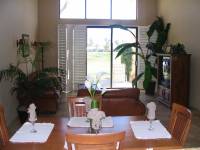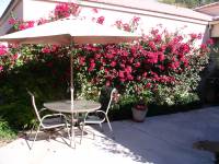 Relax while listening to the water fountain in the fenced private front yard (suitable for a quiet pet) or on the back patio while enjoying the golf game of your neighbors.