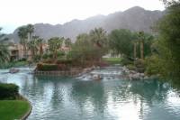A three bedroom split level condo overlooking lake and waterfalls to breathtaking Santa Rosa mountains. Southwest aspect located inside the gated community of Arnold Palmer PGA West.