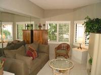 This two-bedroom with a morning room, two-bath condominium has been professionally decorated and comes turnkey furnished with all the comforts of home. The private courtyard entry has a gas grill and offers a third outdoor seating area, great for entertaining. At approximately 1600 feet, this home has King bed in the Master Retreat, Qeen bed in the Guest Suite, and a queen-size sofa sleeper located in the morning room, all have been elegantly appointed in Ralph Lauren Linens. The laundry room has a full-size Washer/Dryer and the kitchen comes complete with gorgeous Stainless Steel Applianes and has all the necessities for the gourmet chef. The home also has a new computer and printer with high-speed Internet access as a courtesy to our guests. Two-car private garage.
