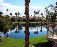 This gorgeous townhouse is just what you were looking for. The townhouse has 2 bedrooms and 2.5 baths, almost 1500 square feet and is located right across from the community pool. Overlooking the Santa Rosa Mountains and Greens Lake and waterfalls, the views are spectacular. The interior is updated and upgraded with granite counters in kitchen and wetbar, recessed lighting, custom cabinets.