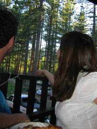 Accommodation for 6 people! The master bedroom has a queen bedroom set, mirrored walking closet, TV/Cable. Separate Living Room functions as a bedroom or a family room and has 2 queen sofa beds, double futon, dressing closet, mirrored dresser, VCR/DVD library. Large Deck with a Forest Pine trees view. Both rooms have TV with a Cable of 14 movies channels. Separate fully equipped garment Kitchen with a dining room has 2 sunny windows. Hall with a closet for skiing shoes/skiing equipment/upper wet cloth, Full bathroom with a bathtub/shower.